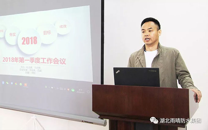 會(huì)議進(jìn)行第三部分,市場(chǎng)部王經(jīng)理對(duì)第一季度工作成果及問題做出了詳細(xì)的陳述與解析,進(jìn)行總結(jié)回顧。然后從行業(yè)前景、需求分析、解決問題及可能性分析等四方面對(duì)防水行業(yè)發(fā)展趨勢(shì)做出了深刻的解讀,列出了目前防水行業(yè)存在的機(jī)遇與挑戰(zhàn),并對(duì)下階段工作進(jìn)行了計(jì)劃安排。夢(mèng)想的道路任重而道遠(yuǎn),勉勵(lì)大家合作共贏。