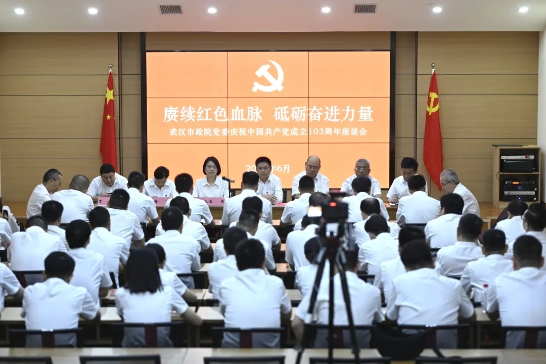 ? ? ? ? 6月29日,武漢市政院召開“黨建引領謀發(fā)展 守正創(chuàng)新譜新篇”主題黨日暨慶祝中國共產(chǎn)黨成立103周年座談會,深入貫徹落實習近平總書記關于國有企業(yè)黨的建設重要思想,參會黨員干部重溫入黨誓詞,在武漢龍源紅色報刊博物館共同參觀中國共產(chǎn)黨自成立以來不同地區(qū)、不同時期具有珍貴歷史文獻價值的報紙、期刊、實物,學習感悟黨的百年奮斗歷程,暢談無限愛黨深情,繼續(xù)以高質量黨建引領高質量發(fā)展的蓬勃朝氣,扎實推進黨紀學習教育,以城投集團“十四五”發(fā)展戰(zhàn)略為指引,加速打造“行業(yè)領先,國內一流的城鄉(xiāng)建設領域整體解決方案供應商”。