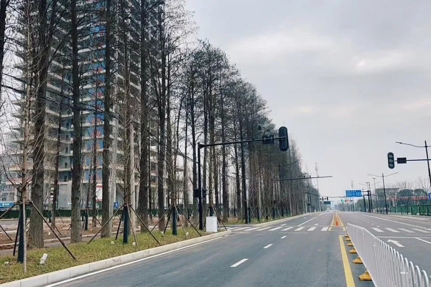 ? ? 在興盛路附近,保留了原有的200余株近40年樹齡的水杉,形成了獨特的水杉景觀帶。這些水杉不僅是城市的歷史記憶,也與現(xiàn)代化的工程建設(shè)完美融合,體現(xiàn)了自然與人文的和諧統(tǒng)一。