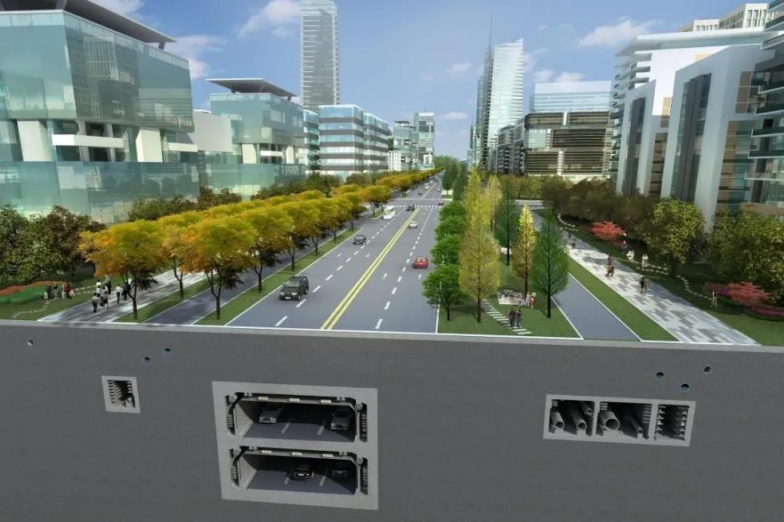 ? ? 同時,道路全線布置有綜合管廊,將高壓電力及各類市政管線入地。這一舉措不僅提升了管線的承載和服務(wù)能力,還為長江新區(qū)的長期可持續(xù)發(fā)展提供了堅實的基礎(chǔ)設(shè)施保障,減少了未來因管線維修對交通和居民生活的影響。