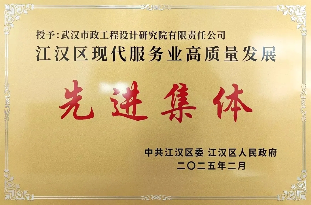 ? ? 近日,江漢區(qū)召開加快現(xiàn)代服務(wù)業(yè)高質(zhì)量發(fā)展大會,表彰轄區(qū)企業(yè)和企業(yè)家在推動江漢區(qū)高質(zhì)量發(fā)展中做出的突出貢獻。武漢市政院榮獲“現(xiàn)代服務(wù)業(yè)高質(zhì)量發(fā)展先進集體”榮譽稱號,成為獲得此項殊榮的3家設(shè)計企業(yè)之一。