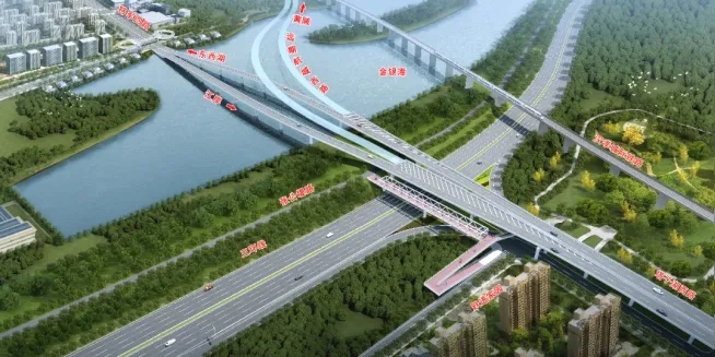 ? ? 根據(jù)項目邊界條件,橋梁工程采用差異化設(shè)計方案,針對不同路段特點進行精細(xì)化設(shè)計:跨黃潭湖深水區(qū)域段上部結(jié)構(gòu)采用預(yù)制鋼混組合梁,下部結(jié)構(gòu)采用高樁承臺配合吊箱圍堰施工,顯著提升施工效率;跨三環(huán)線采用86.6米大跨徑簡支鋼箱梁,跨徑位居國內(nèi)同類橋梁前列,并配套采用鋼-UHPC輕型組合橋面體系,有效提升結(jié)構(gòu)耐久性;陸地段選用預(yù)應(yīng)力混凝土結(jié)構(gòu),大幅降低建設(shè)成本。
