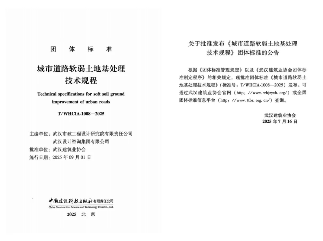 武漢市政院與武漢設計咨詢集團聯(lián)合主編的團體標準《城市道路軟弱土地基處理技術規(guī)程》,已由武漢建筑業(yè)協(xié)會批準發(fā)布。該規(guī)程是國內首部專門針對城市道路軟弱土地基處理的技術標準,有效解決了現(xiàn)行建筑與公路規(guī)范在市政道路工程中存在的諸多不明確、不統(tǒng)一的應用問題。其內容系統(tǒng)全面,兼具實用性與先進性,既體現(xiàn)了市政行業(yè)特色,又契合城市道路實際建設需求,對湖北省內城市道路軟弱土地基處理的設計、施工、關鍵技術方法及檢測監(jiān)測等方面提供了權威依據(jù)與科學指導。該《規(guī)程》整體達到國內先進水平,在行業(yè)與省內居于領先地位。它的發(fā)布進一步鞏固了武漢市政院在市政巖土工程領域的技術優(yōu)勢,顯著提升了公司的行業(yè)影響力與核心競爭力。