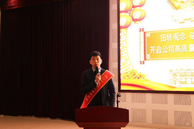 襄陽(yáng)分公司經(jīng)理萬(wàn)永盛代表“目標(biāo)管理先進(jìn)集體”上臺(tái)發(fā)言,他用“擼起袖子拼命干”概括了自己2019年的心路歷程,將成績(jī)歸功于公司領(lǐng)導(dǎo)的支持、兄弟部門的配合和本部門員工的全力以赴,并對(duì)明年的相關(guān)工作展示出了極大的信心。