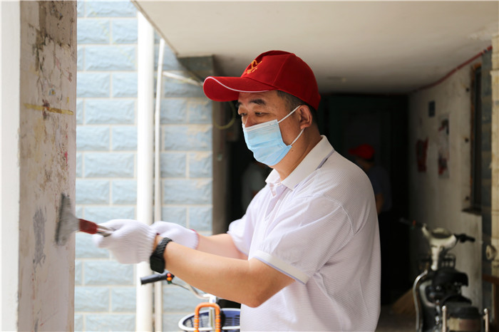 由于該小區(qū)系老舊小區(qū),樓棟內(nèi)沒有電梯,黨員們需要步行逐層進(jìn)行清理,加之暑熱未消,沒過一會(huì)他們的衣服就被汗水浸濕了,額頭上也掛滿了密密的汗珠。但看著煥然一新的房門和墻面,他們的心里也油然生出了滿滿的成就感。