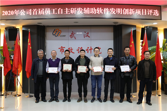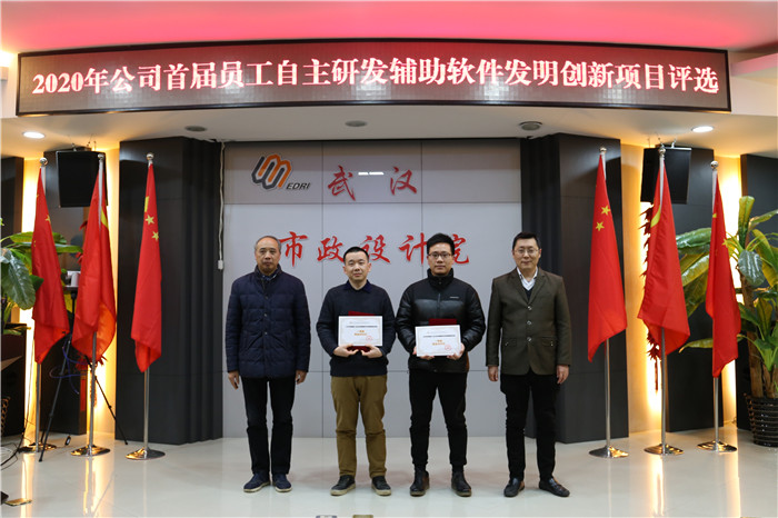 經(jīng)過(guò)精彩的匯報(bào)和評(píng)委們的認(rèn)真評(píng)價(jià),來(lái)自交通研究院張燦的《武漢市政規(guī)劃設(shè)計(jì)平臺(tái)》和來(lái)自荊門(mén)分公司劉盾的《CAD輔助設(shè)計(jì)軟件》獲得了本次比賽的一等獎(jiǎng),二、三等獎(jiǎng)也各有歸屬,公司領(lǐng)導(dǎo)為獲獎(jiǎng)項(xiàng)目頒獎(jiǎng),并與軟件開(kāi)發(fā)者合影留念。