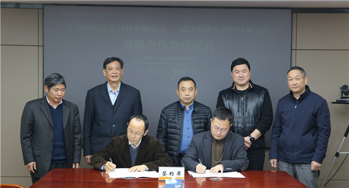 2021年3月11日上午,武漢市政設計院與上海同筑信息科技有限公司在漢簽署戰(zhàn)略合作協(xié)議,將雙方數(shù)字化合作進一步推向深入。武漢市政設計院總經理姚華、副總經理陳建斌,上海同筑信息科技有限公司董事長尹仕友、副總經理劉建成及雙方相關人員出席簽約儀式。