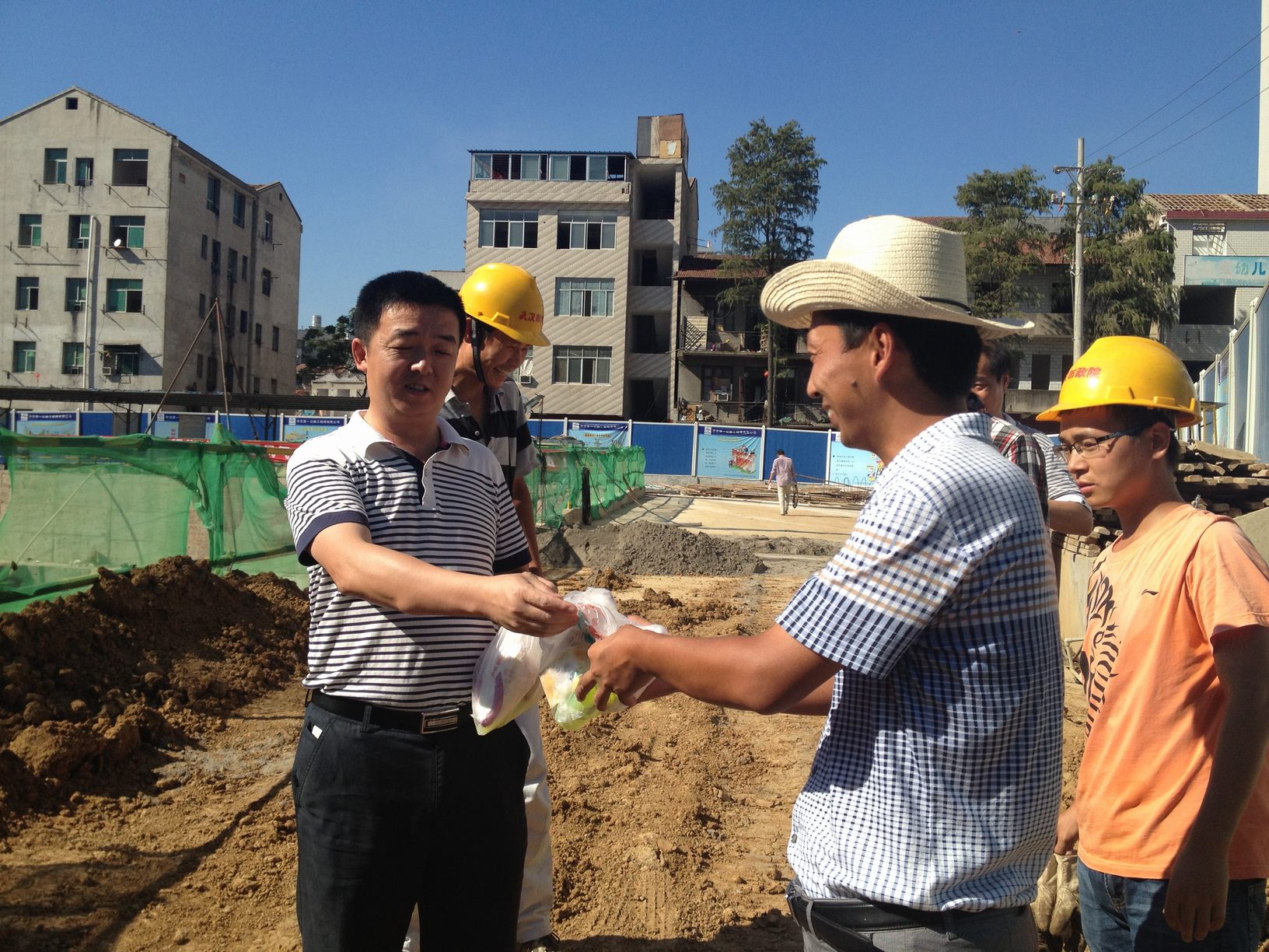 ??? 公司領(lǐng)導(dǎo)先后來(lái)到公司承接的江大路地鐵站、長(zhǎng)豐大道、王家灣地鐵站、馬場(chǎng)路等工地現(xiàn)場(chǎng),為駐守在現(xiàn)場(chǎng)的員工送上高溫慰問(wèn)品,并發(fā)放了慰問(wèn)金。公司領(lǐng)導(dǎo)詳細(xì)詢問(wèn)了員工們的工作和生活情況,叮囑他們?cè)诒WC工程進(jìn)度和質(zhì)量的前提下,注意高溫天氣下的工作安全,保證身體健康。