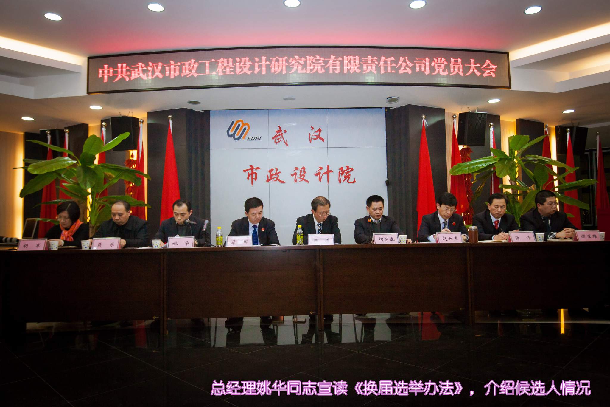 ??? 1月23日,公司召開黨員大會,選舉產(chǎn)生了新一屆中共武漢市政工程設(shè)計(jì)研究院有限責(zé)任公司委員會、紀(jì)律檢查委員會。武漢市城鄉(xiāng)建設(shè)委員會機(jī)關(guān)黨委專職副書記陳耕同志到會指導(dǎo),公司200余名黨員參會,會議由公司董事長、黨委副書記柯昌春同志主持。