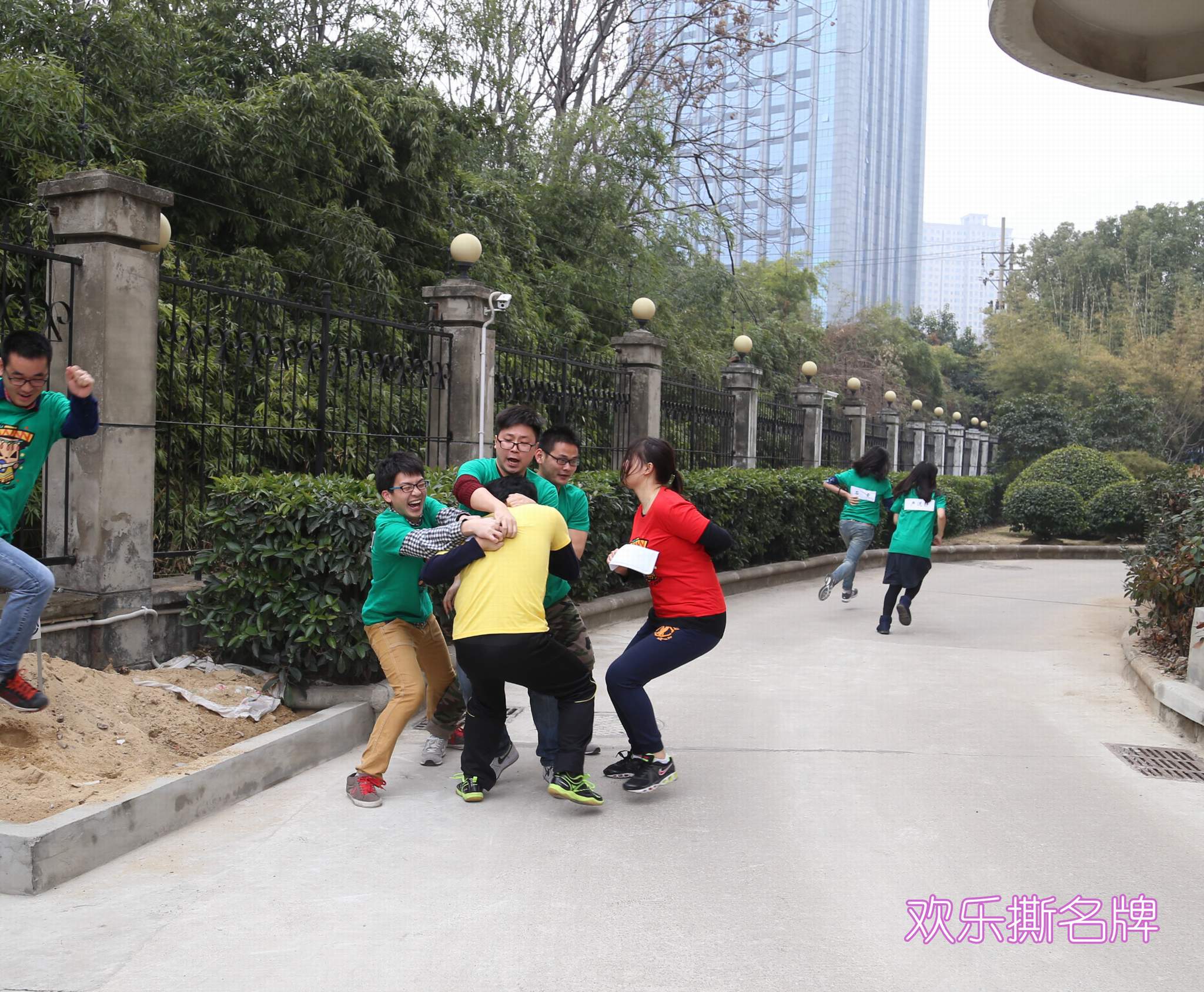 ??? 活動(dòng)的最后一個(gè)環(huán)節(jié),就是撕名牌。每名隊(duì)員背后貼有自己名字的名牌,三支隊(duì)伍互相撕下對(duì)方的名牌,被撕下名牌者即遭淘汰,每隊(duì)最終保存名牌人員最多者獲勝。此時(shí),綠、黃兩隊(duì)在前幾個(gè)環(huán)節(jié)中獲得的錦囊將發(fā)揮作用,包括“死亡筆記”(持有者寫下名字的隊(duì)員直接出局)、“傷害反彈”(被撕掉名牌者與實(shí)施行為者同時(shí)出局)、“女神的寬恕”(女隊(duì)員指定任意一名出局的參賽者復(fù)活)、“傷害冬眠”(撕掉技能持有人的名牌者冬眠15分鐘,不能攻擊,只能防守)。