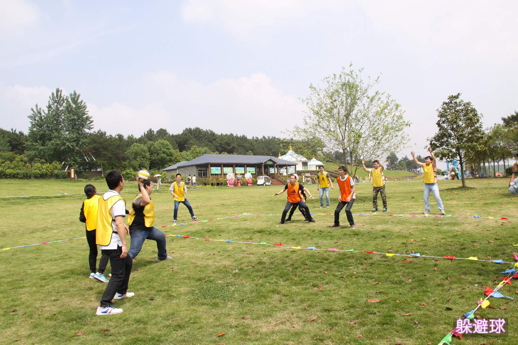 ??? 上午的最后一個項目是“躲避球”,每支隊伍選派1名女隊員和6名男隊員參賽,比賽雙方用排球向?qū)Ψ酵稊S,先擊中女隊員的一方獲勝,這個項目考驗的是隊伍的團(tuán)隊精神和奉獻(xiàn)精神,而隊員們也都很好的完成了挑戰(zhàn)。