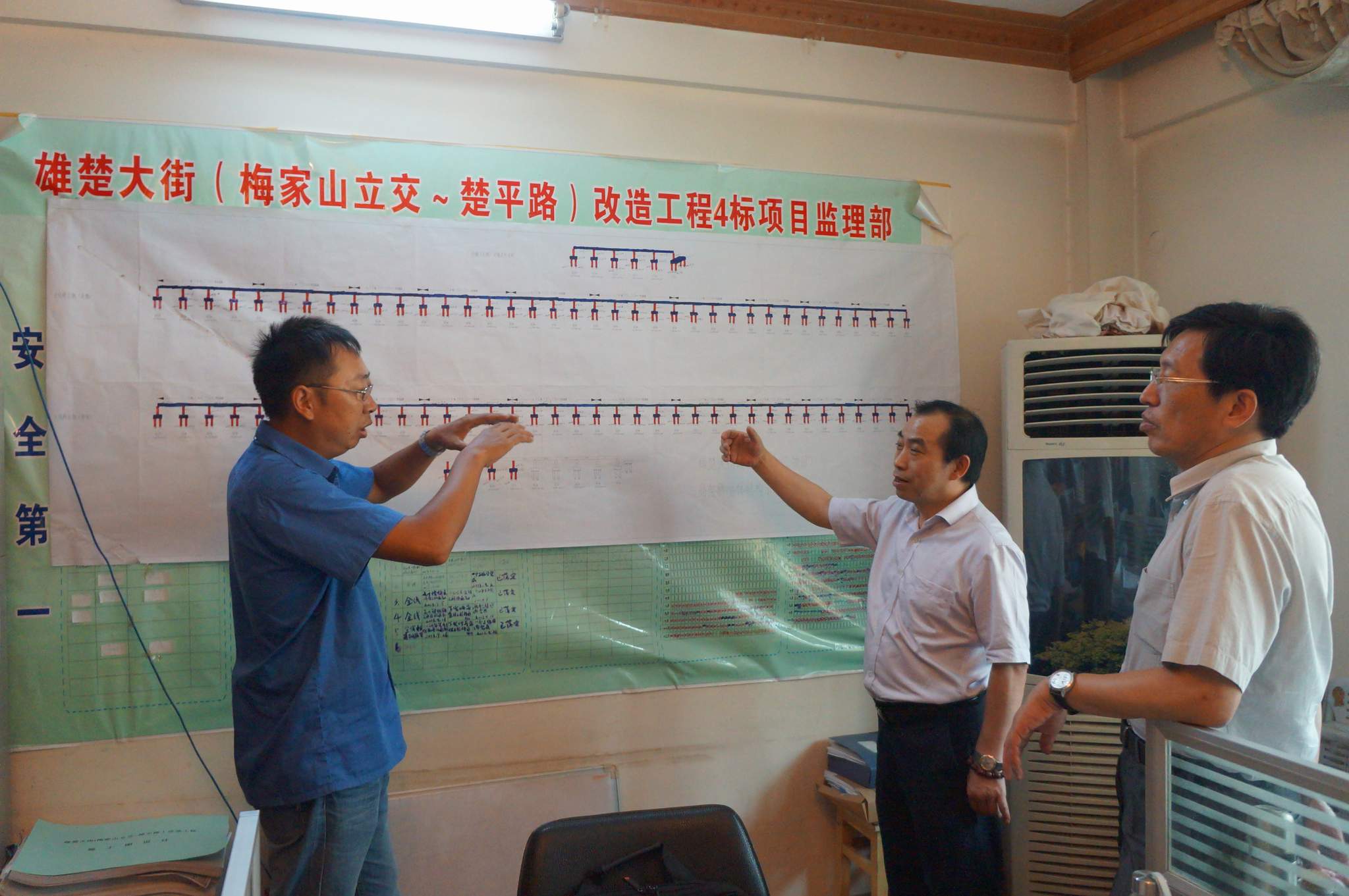 ??? 8月5日,公司總經(jīng)理姚華、副總經(jīng)理趙世杰帶領(lǐng)綜合辦公室、監(jiān)理公司、勘測設(shè)計院等部門負責人,對部分工地進行了走訪慰問,為高溫下堅持工作的一線員工送上一份清涼。