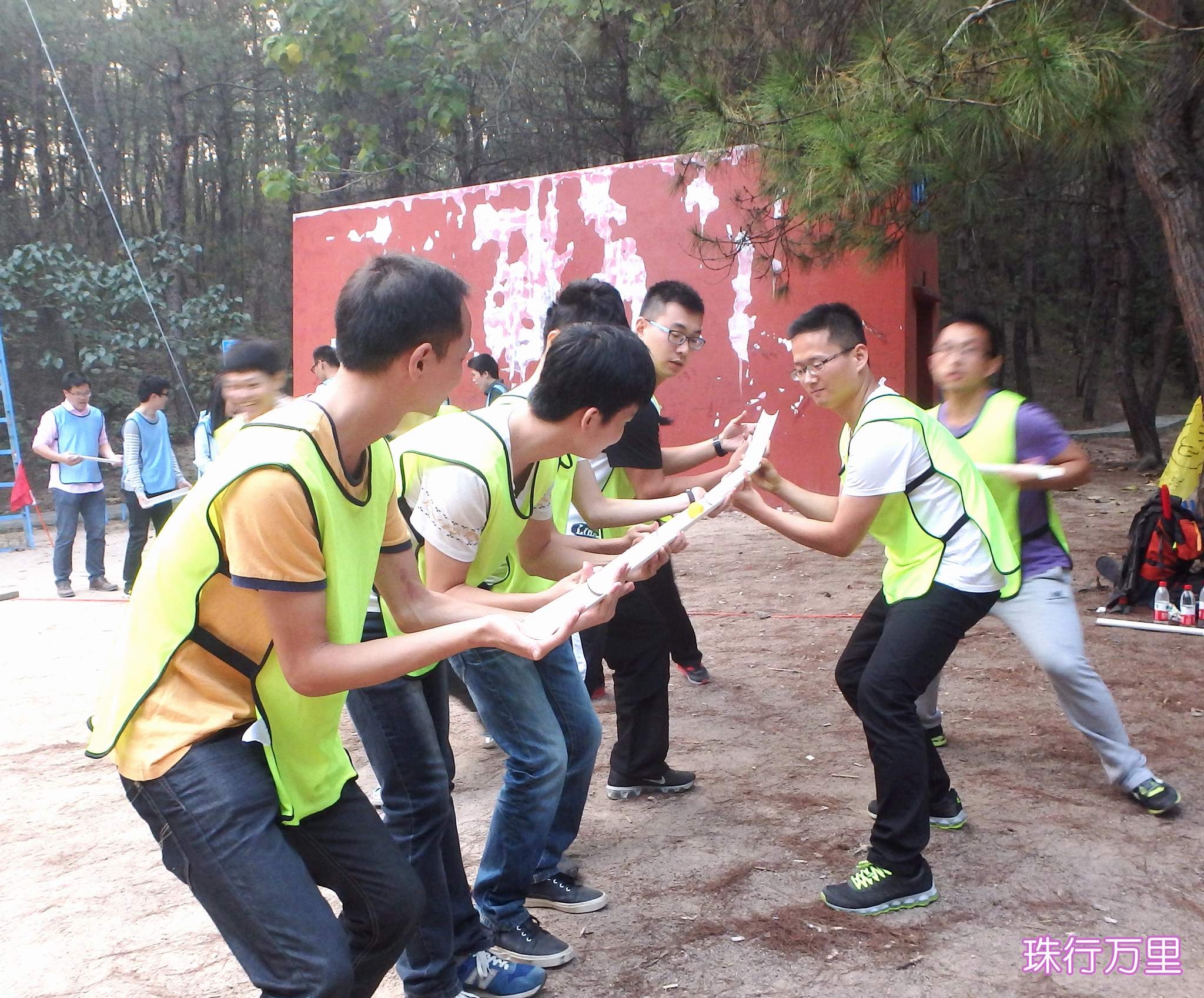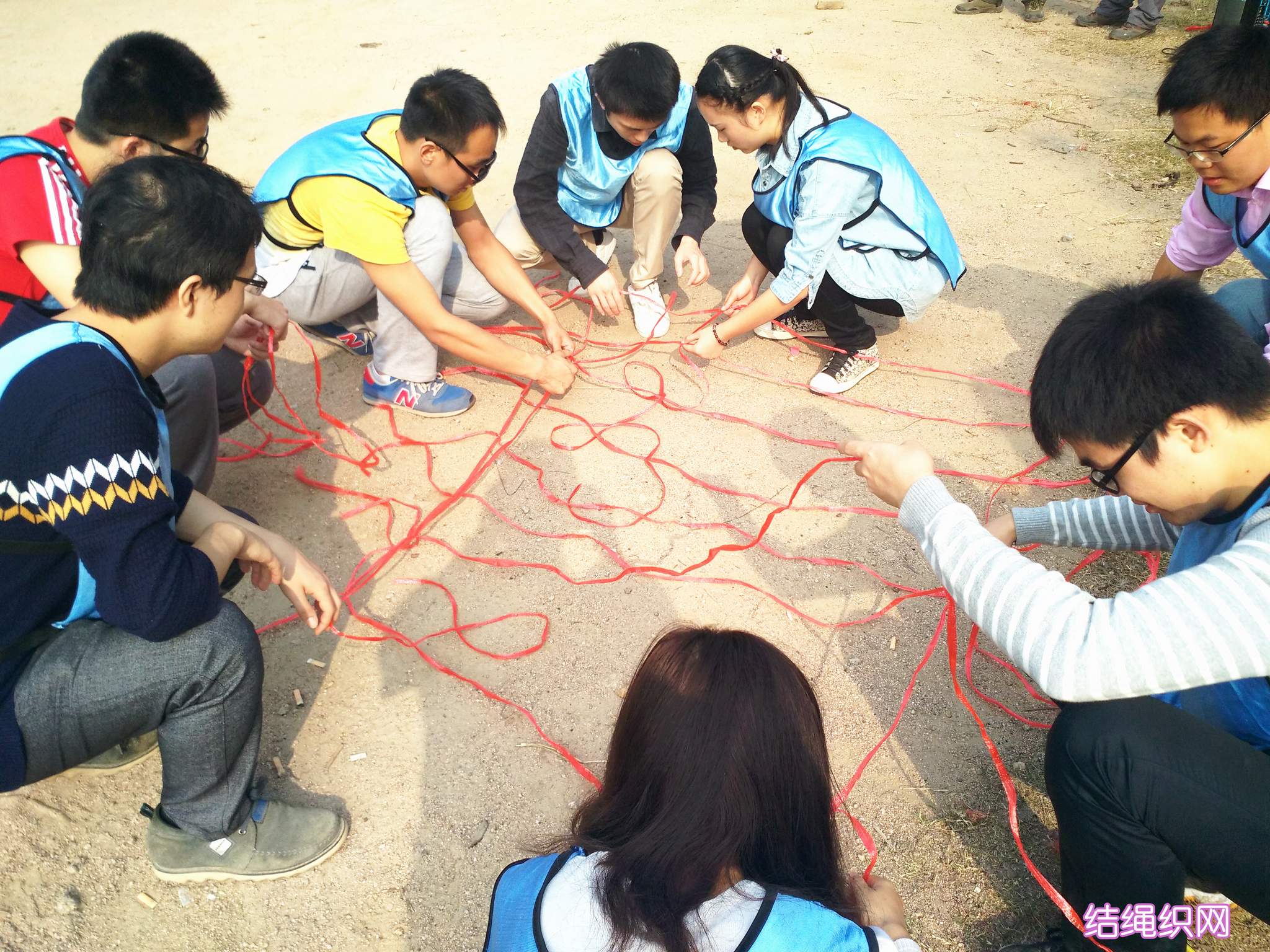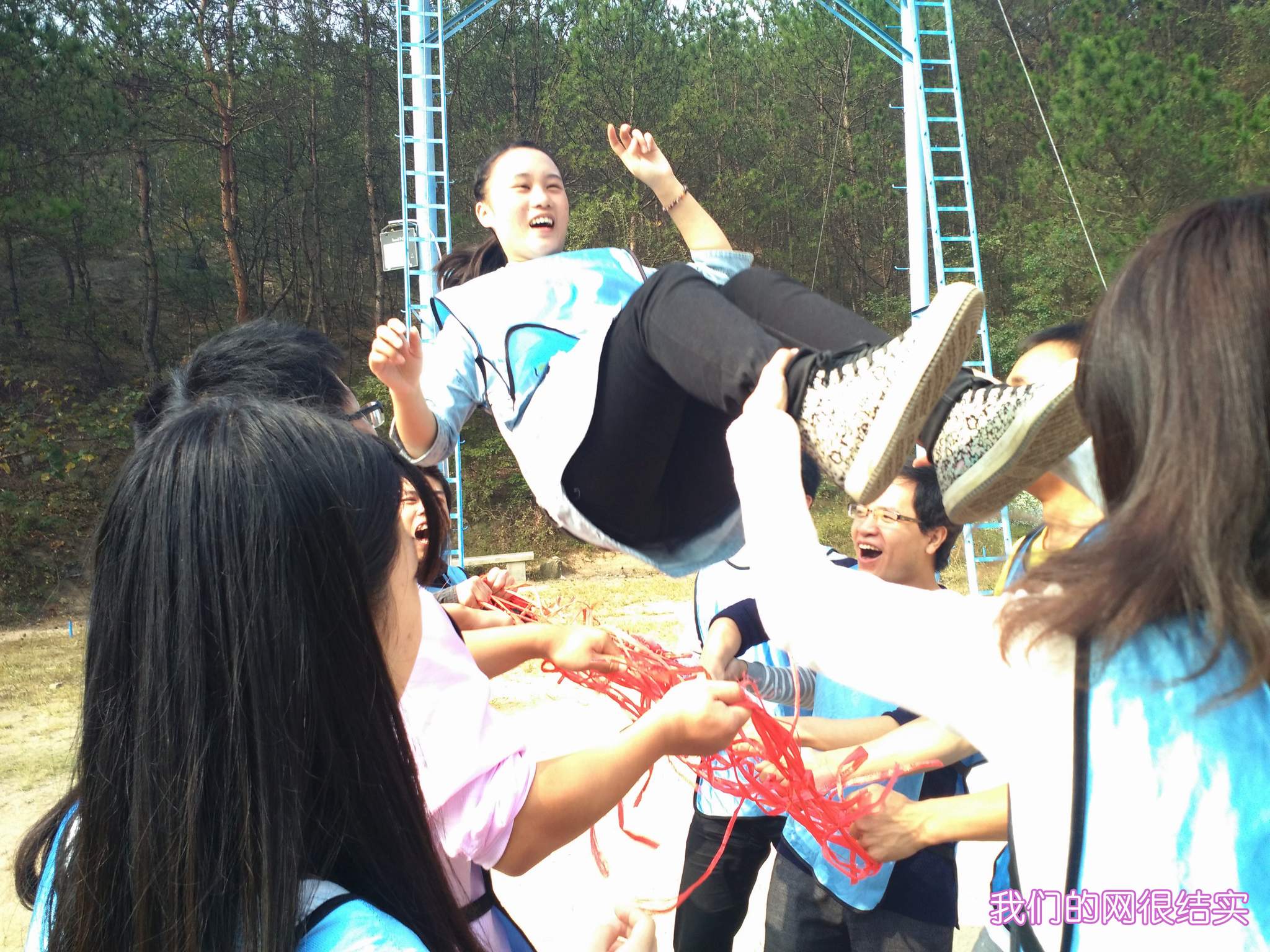 ??? 在抵達(dá)活動地點(diǎn)進(jìn)行了簡單的破冰活動后,新員工們組成了兩支隊伍,并策劃了隊名、隊旗和口號。隨后,在教練員的帶領(lǐng)下,新員工們開始了一系列的拓展活動:“珠行萬里”,隊員們手持半圓形軌道接力將乒乓球運(yùn)到終點(diǎn),考驗(yàn)的是團(tuán)隊合作能力;“橫行天下”,多人多足的橫向移動,除了默契的團(tuán)隊配合,也需要一定的技巧;“結(jié)繩織網(wǎng)”,細(xì)細(xì)的尼龍繩結(jié)成能承受一個人重量的網(wǎng),是對動手能力和創(chuàng)造能力的雙重考驗(yàn)。