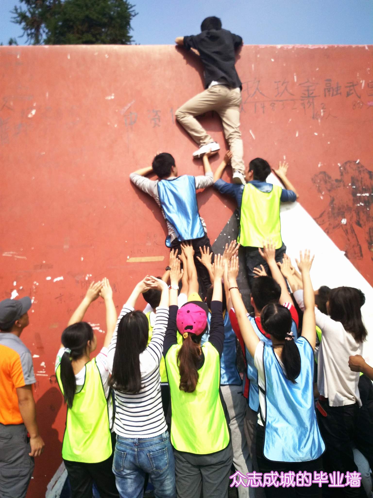 ??? 在最后的“畢業(yè)墻”環(huán)節(jié),大家團(tuán)結(jié)一心,幾名隊員先是搭起了雙層人梯,將幾名隊員率先送上去,剩下的隊員借助人梯,上面的隊員也是又拉又拽,很快,二十幾名隊員便全部成功登頂。