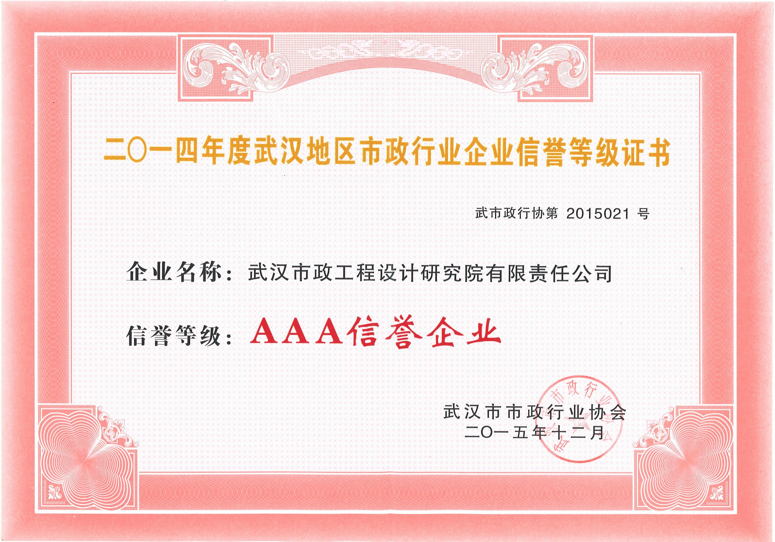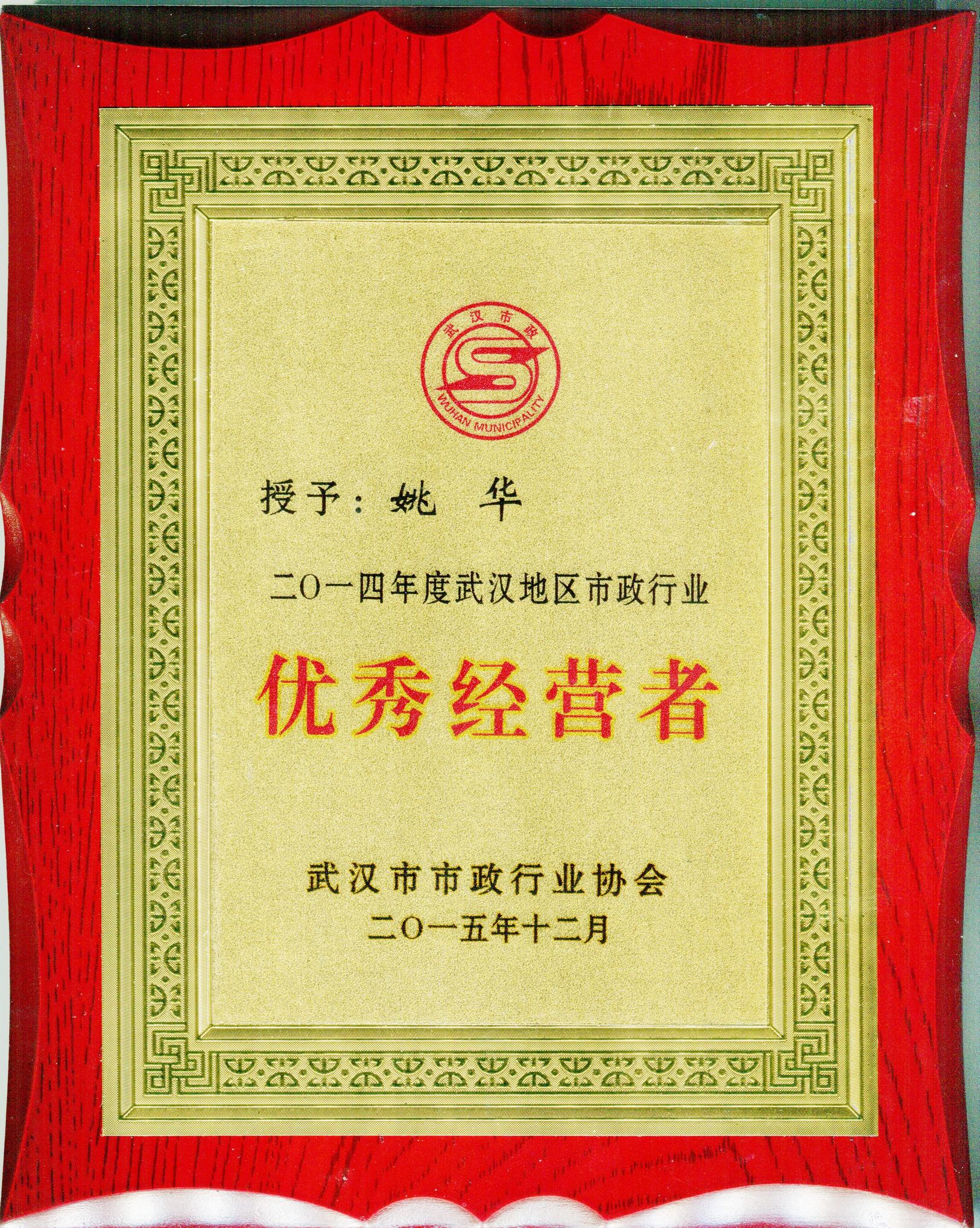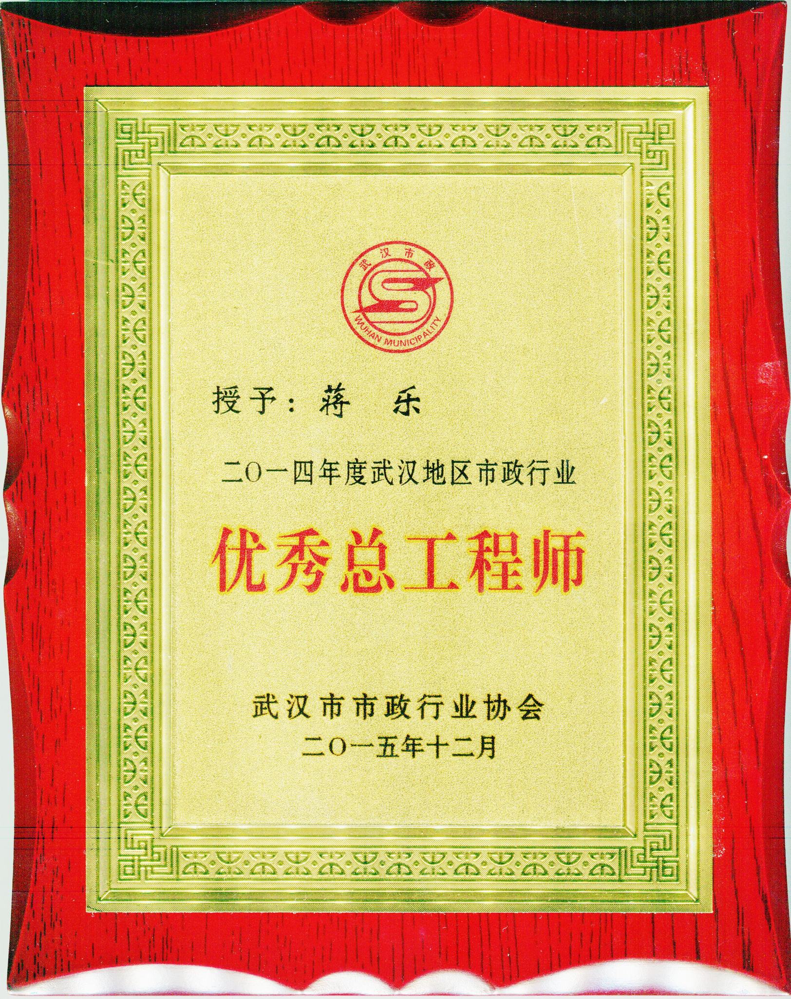 ??? 在2014年度的武漢市市政行業(yè)協(xié)會(huì)榮譽(yù)評(píng)選中,公司榮獲了“武漢地區(qū)市政行業(yè)先進(jìn)企業(yè)”、“AAA信譽(yù)企業(yè)”等榮譽(yù)稱號(hào);總經(jīng)理姚華同志榮獲“優(yōu)秀經(jīng)營(yíng)者”稱號(hào);副總經(jīng)理、總工程師蔣樂(lè)榮獲“優(yōu)秀總工程師”稱號(hào);萬(wàn)飛、盛建偉榮獲“優(yōu)秀監(jiān)理工程師”稱號(hào)。