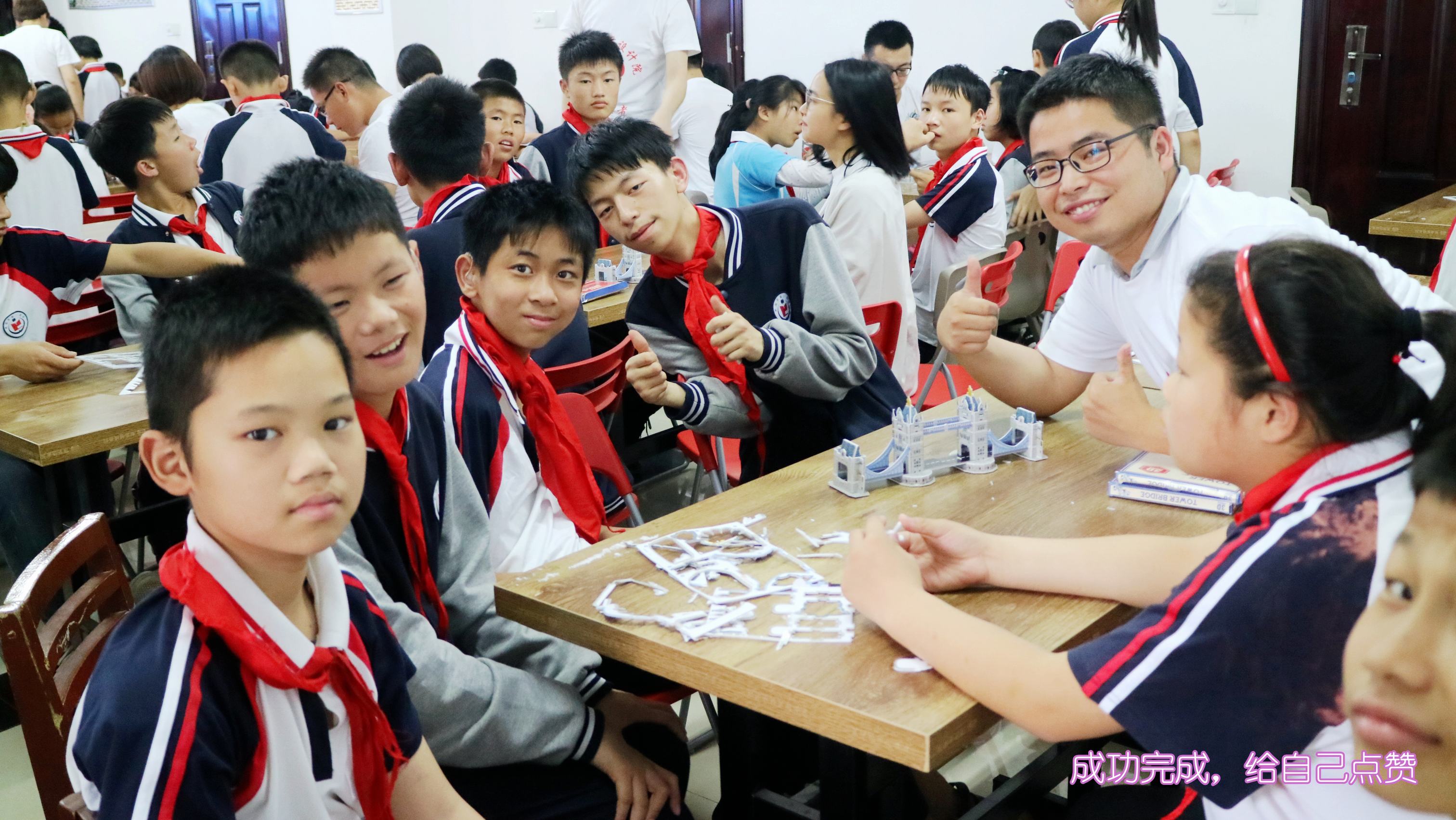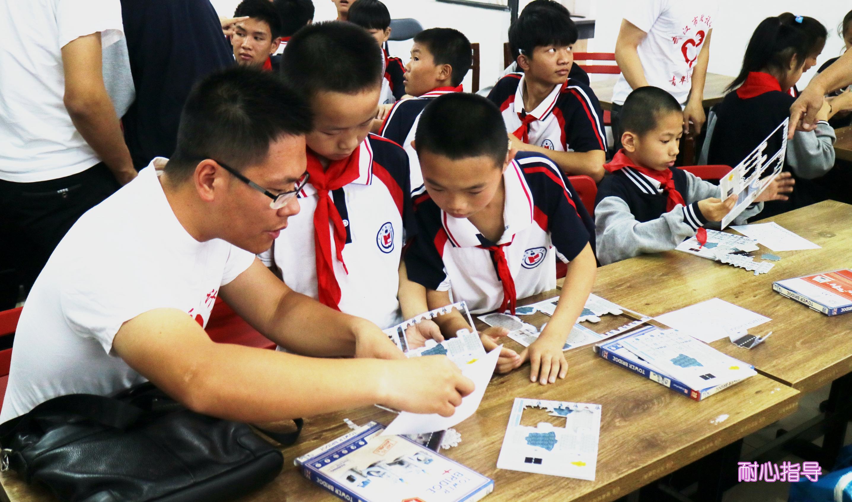 ??? 接下來(lái)的“愛(ài)心課堂”,志愿者們與孩子們共同協(xié)作,進(jìn)行倫敦雙子塔橋模型的拼裝。在志愿者的幫助下,孩子們小心地將圖板拆解下來(lái),按照說(shuō)明書的圖示認(rèn)真地開(kāi)始拼裝。遇到困難的步驟,志愿者們耐心地給他們講解、示范,在孩子們正確拼裝后,志愿者們會(huì)豎起大拇指對(duì)他們進(jìn)行鼓勵(lì)。很快,一座座模型便在他們手中完成了。最先完成的三組,志愿者們都給他們送上了獎(jiǎng)品。