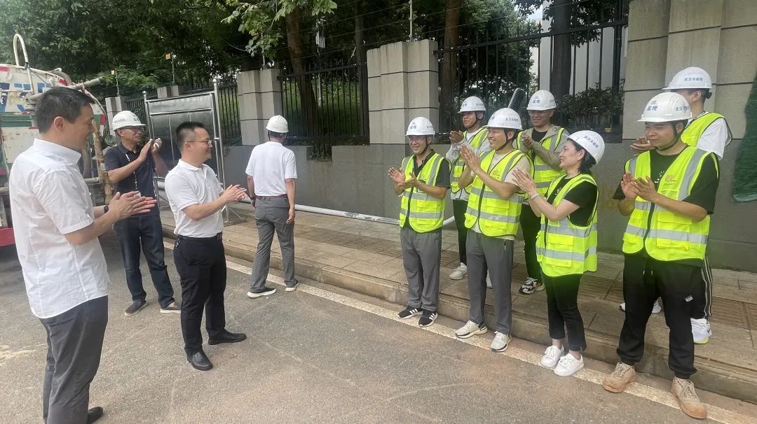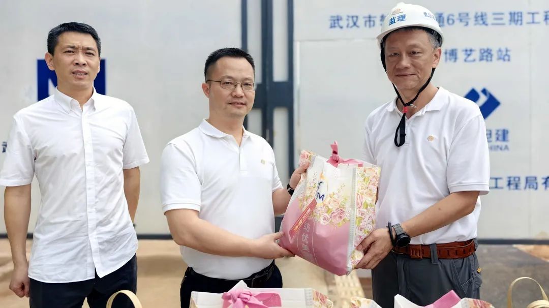 7月25日,公司黨委委員、副總經(jīng)理饒世雄看望慰問武漢市軌道交通11號線三期首開段工程測量監(jiān)理及監(jiān)測項目現(xiàn)場人員。他要求項目部根據(jù)工作實際,靈活調整或縮短外出工作時間,盡量避開高溫時段作業(yè),避免疲勞作業(yè),確保員工身心健康。