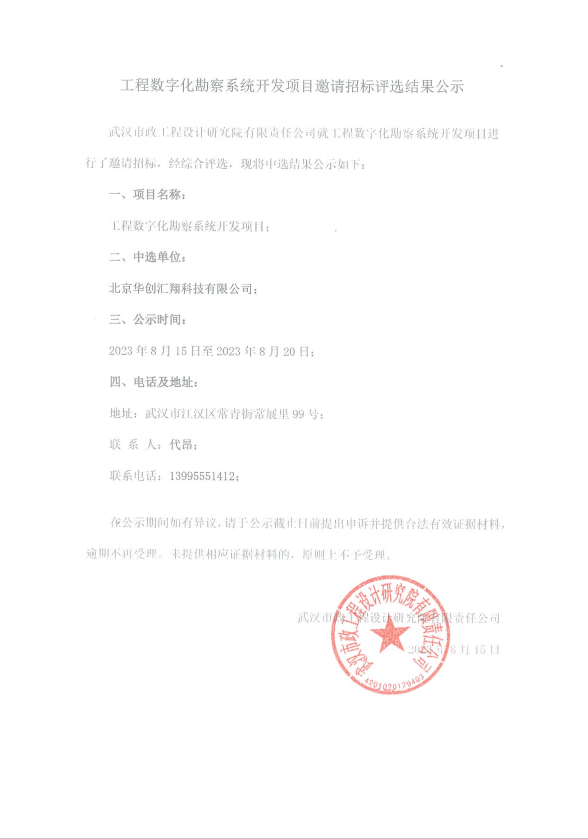 工程數(shù)字化勘察系統(tǒng)開發(fā)項目邀請招標(biāo)評選結(jié)果公示